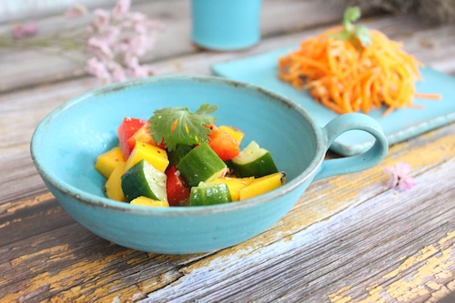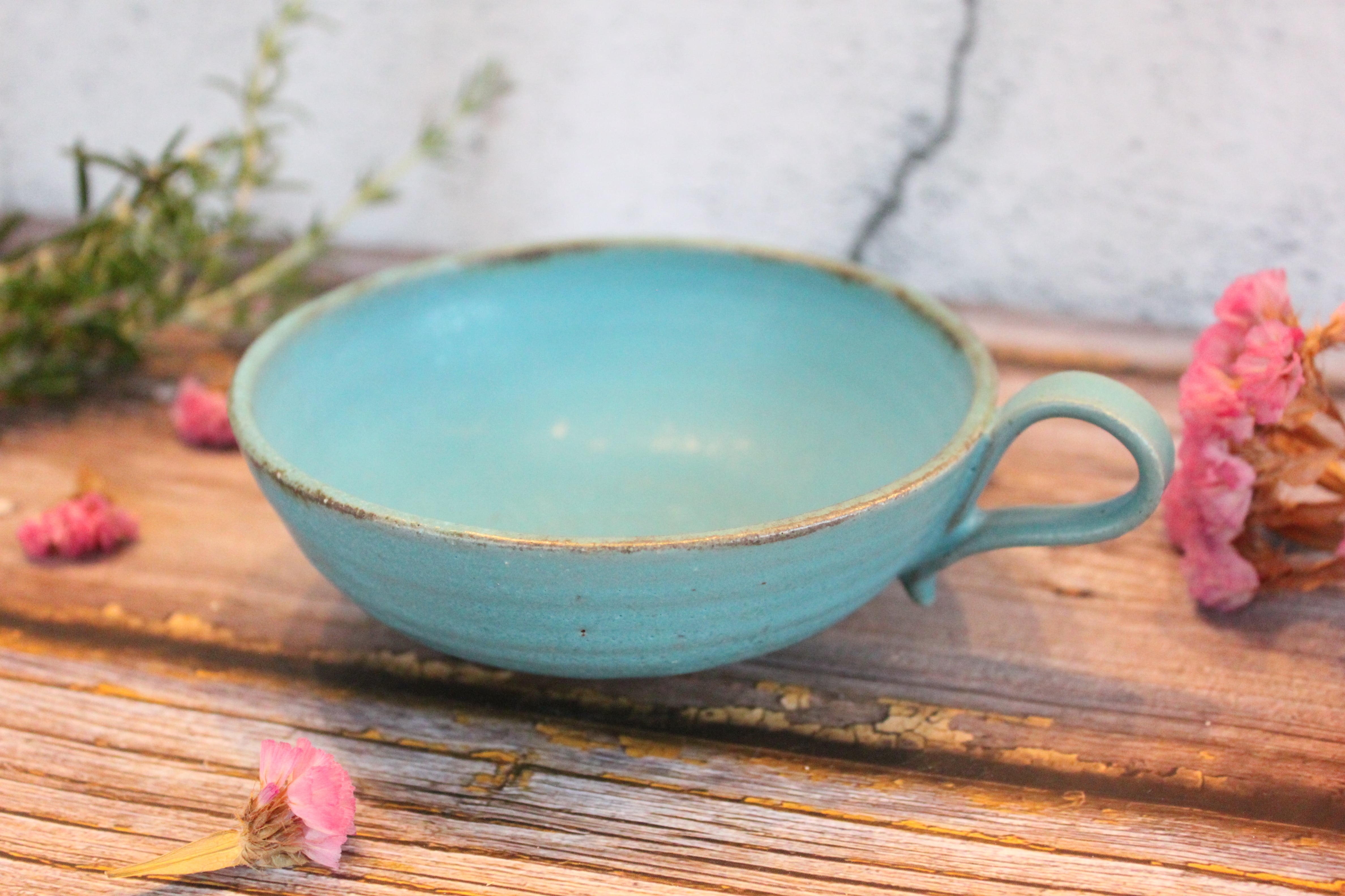 ●口縁部のこげ茶がターコイズブルーを引き立て